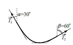Рассмотрим левый кусок веревки. На него действуют две внешние силы, одна T1, а вторая от другого участка веревки, направленная горизонтально вправо. Так как центр масс этого куска не движется по вертикали, мы понимаем, что вертикальная проекция T1 равна действующей на этот кусок веревки сил вниз или