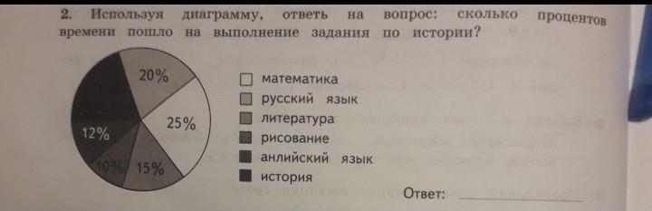 используя диаграмму ответьте на вопрос сколько процентов времени пошло на выполнение по истории