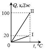 На рисунке показаны графики зависимости количества теплоты, подведенного к телам 1 ( римская ) и 2 ( римская ) одинаковой массы, от температуры. Известно, что тело 1 ( римская ) изготовлено из чугуна. Пользуясь приведенной в Инструкции таблицей, определите, какое из веществ могло быть использовано для изготовления тела 2 ( римская ).
