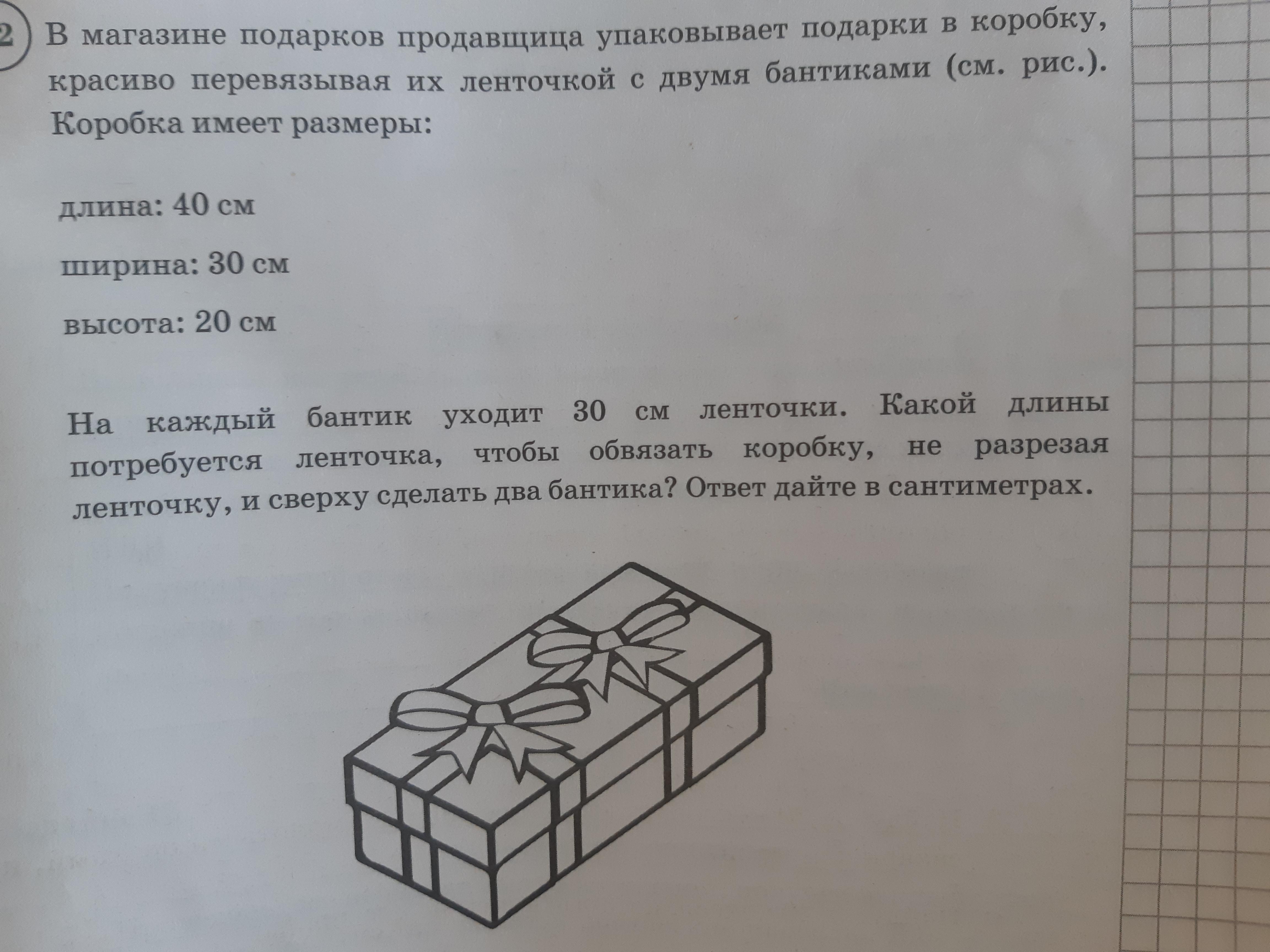 6высоты+4ширины+2длины+2бантика=6*20+4*30+2*40+2*30=....