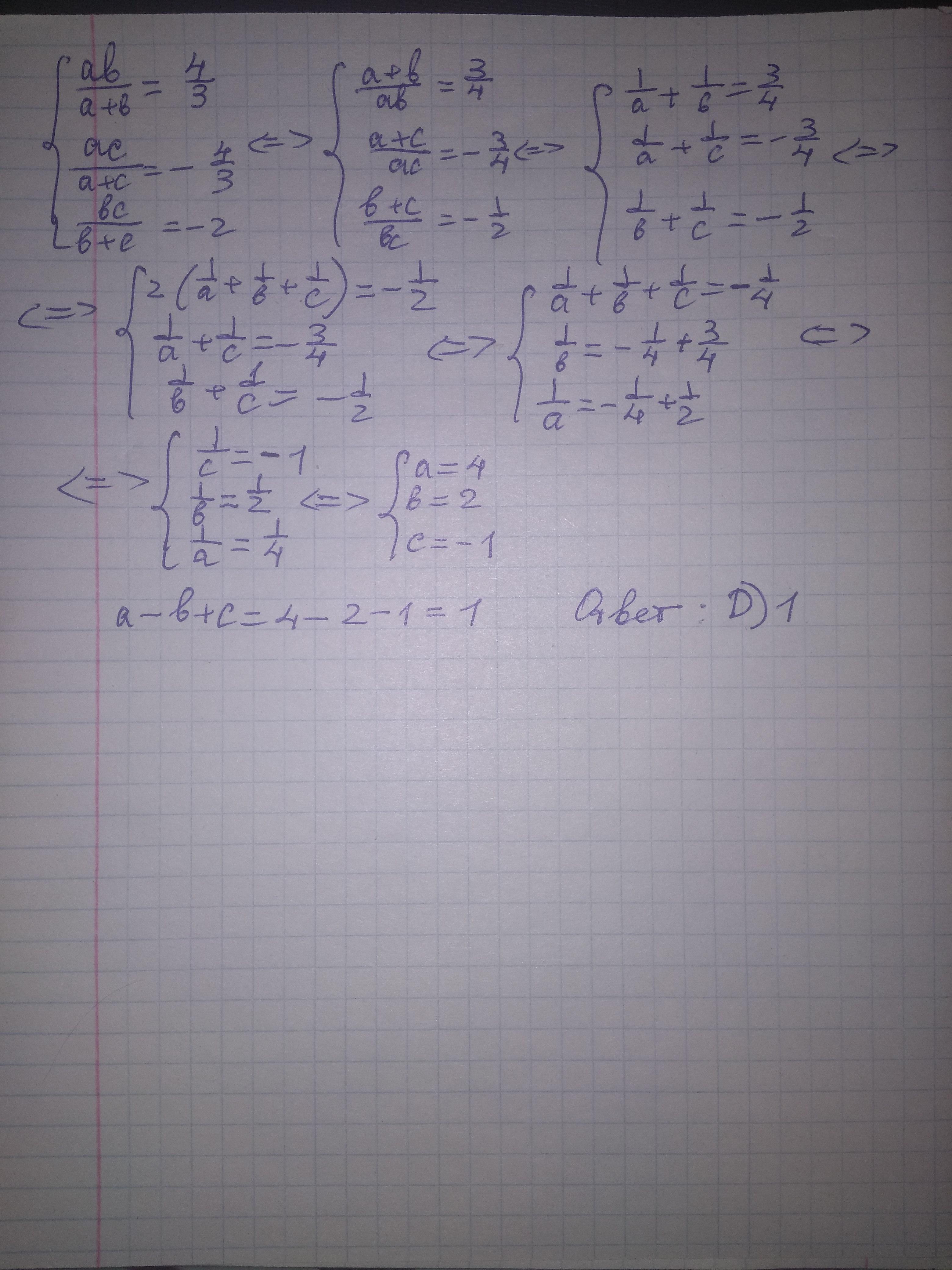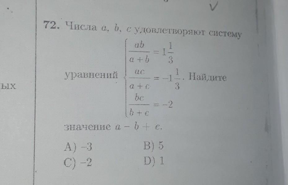 у72) Числа a, b, c удовлетворяют систему уравнений ... . Найдите значение a-b+c