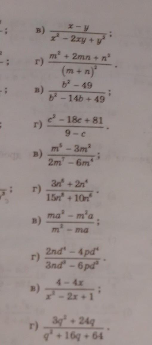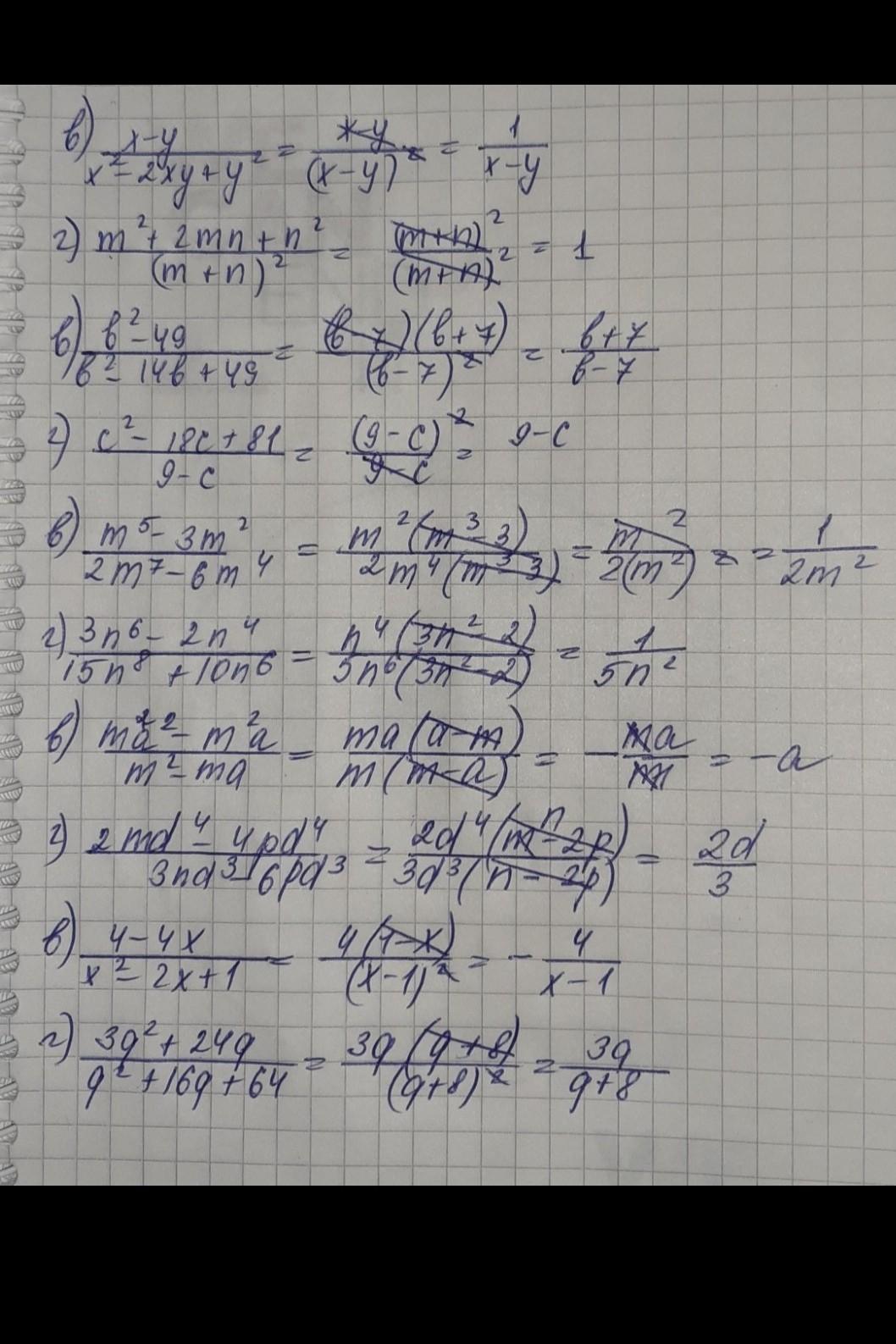 сокращение m² и m⁴ на m², (m³-3) и (m³-3) на (m³-3):
