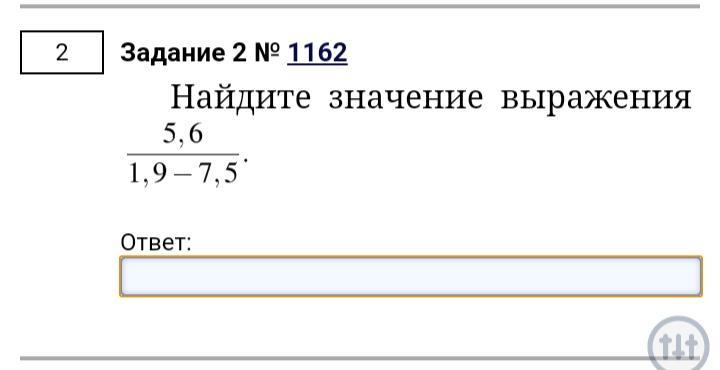 5,6/(1,9-7,5) = 5,6/(-(7,5-1,9)) = 5,6/-5,6 = -1
