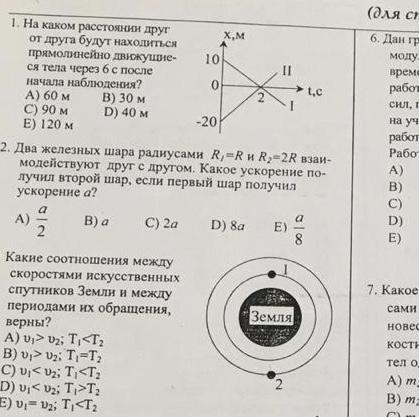 1. По графикам определим вид уравнений движения тел: