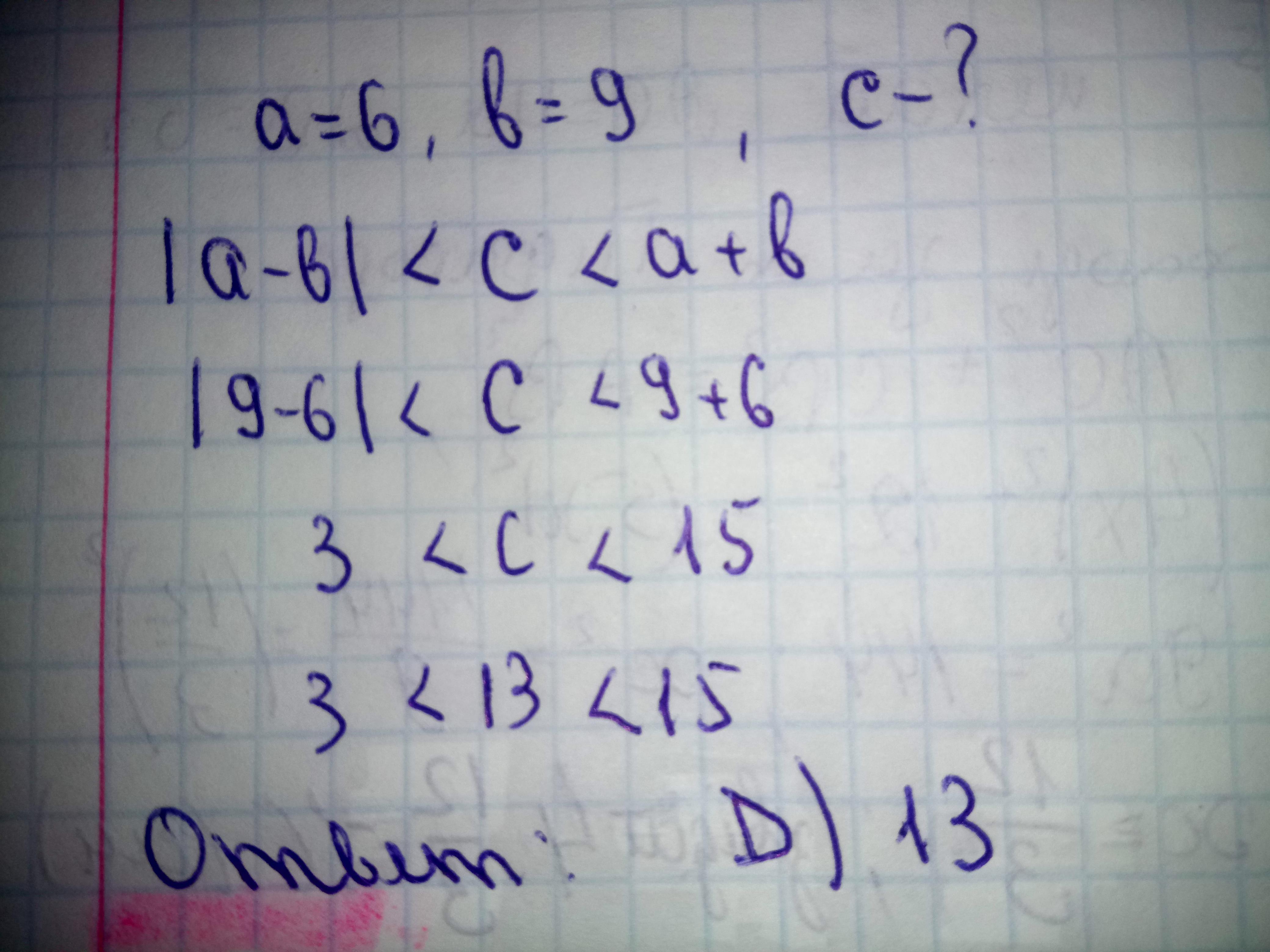 Чему может быть равна третья сторона треугольника если его две другие стороны 9 см и 6 см A)18 B)3 C)16 D)13