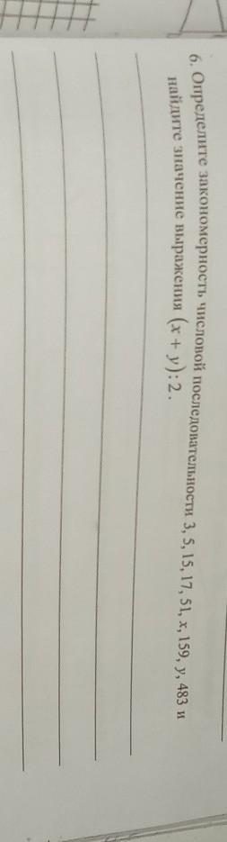 6. Определите закономерность числовой последовательности 3, 5, 15, 17, 51, x, 159, y, 483 и