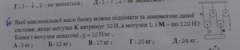 Веревка К выдерживает 50 Н, тогда и натяжение везде не должно быть больше 50 Н.