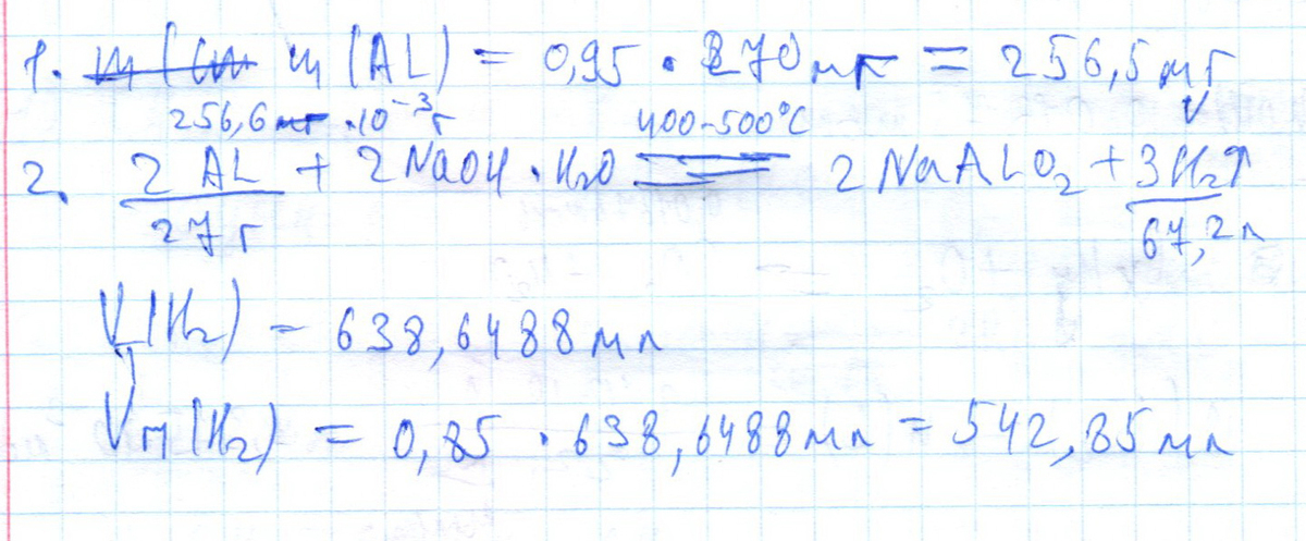 Вычислите объем водорода (н.у.) который может быть получен при растворении в едком натре 270мг сплава алюминия, содержащего 5% меди, Выход водорода примите равный 85% от теоретически возможного.
