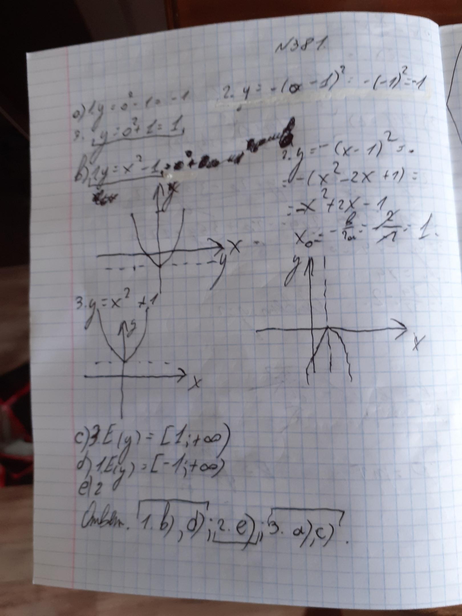 1) ветви параболы направлены наверх, а вершина опущена на 1 по оси Oy