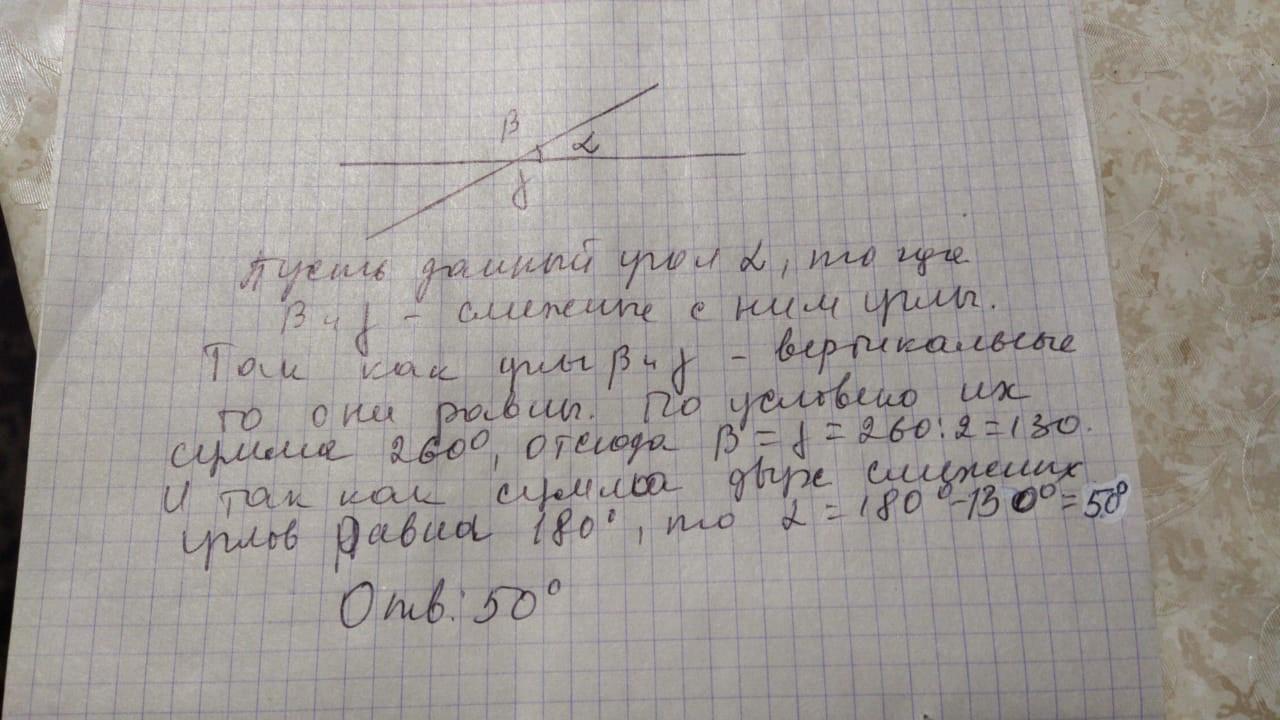 <1 + <3 = 260°, значит, <1 = <3 = 260/2 = 130°.
