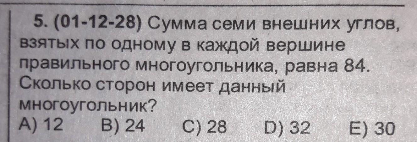 12°*n=360° n=360°/12=30°, т.е. в многоугольнике 30 сторон.