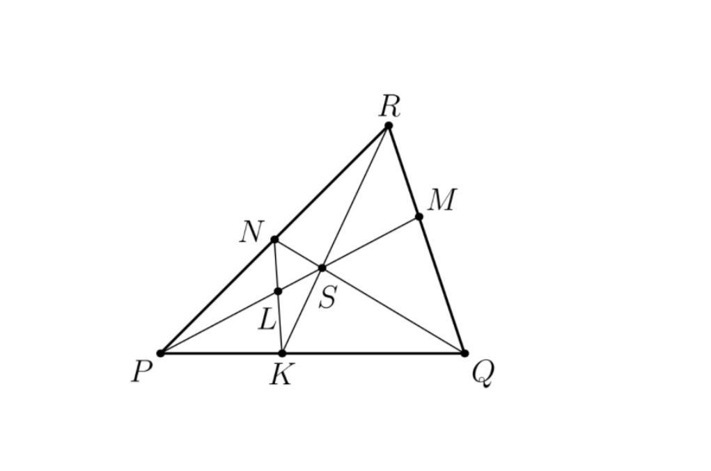 Помогите, пожалуйста! Дано P K : K Q = 2 : 3 и N S : S Q = 1 : 3 . Найдите нужные отношения. L K : N L /R N : N P /KS:SR