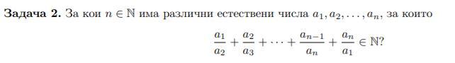 Для каких n ∈ существуют различные(не равные) числа a1, a2, a3,..., для которых выполняется равенство [...]?
