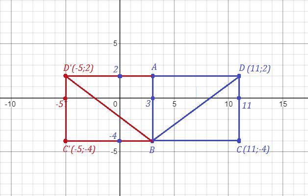 Ординатa точки D равна ординате точки А, абсцисса точки D равна