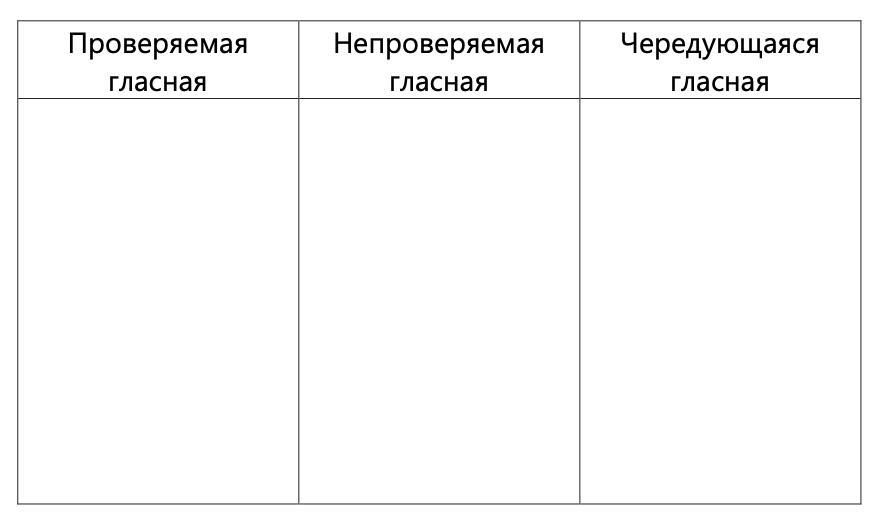 1.1. Заполните таблицу. Выпишите слова с пропущенными буквами в следующем порядке: с безударной гласной в корне, проверяемой ударением; непроверяемой; чередующейся. Вставьте пропущенные буквы. 1. Глупцы не разумом, не честностью бл_стали, но золотом одним. (К.Батюшков) 2. Цв_ты последние м_лей роскошных первенцев п_лей. (А.Пушкин) 3. Бл_еснет заутра луч денницы, и заиграет яркий1 день. (А.Пушкин) 4. Вой протяжный г_лодных волков разд_ется в тумане др_мучего леса. (Я.Полонский) 5. Под золотом з_ри березовый лесок. (С.Надсон) 6. Березы ст_яли все белые, без блеску, белые, как только вып_вший снег, до которого еще не к_снулся холодно играющий2 луч зимнего солнца. (И.Тургенев) 7. Небо, полное гр_зою, все в з_рницах тр_петало. (Ф.Тютчев) 8. Лишь п_утины тонкий волос бл_стит на праздной борозде. (Ф.Тютчев) 9. Над рекой накл_нясь, что-то шепчет камыш. (И.Суриков) От цв_тов в п_лисаднике шел дурманящий зап_х. 10. Здесь так внезапно обрывалась суша и расст_лалась вечная вода! (В.Ленцов) 11. И тогда из зар_слей орешника выск_чила большая 3 белобокая собака . (В.Ленцов) 12. За широким окном св_ркала под лучами снежная р_внина. (В.Ленцов) 13. В к_ллекции сада насчитывается пятьдесят четыре вида р_стений, зан_сенных в Красную книгу. (Н.Замятин) 14. Рев нар_стал, зап_лняя весь мир, разд_рая уши. (Стругацкие)