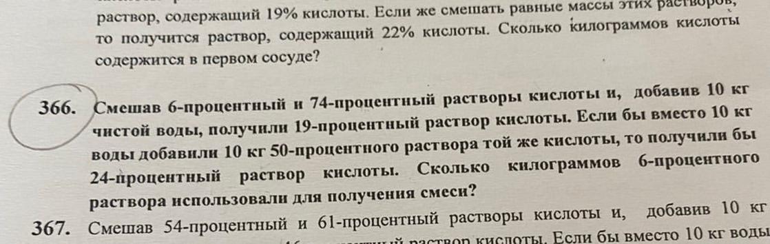 Если смешать два этих раствора и добавить воду, то получится 19% раствор кислоты массы x+y+масса воды.Запишем в виде уравнения: