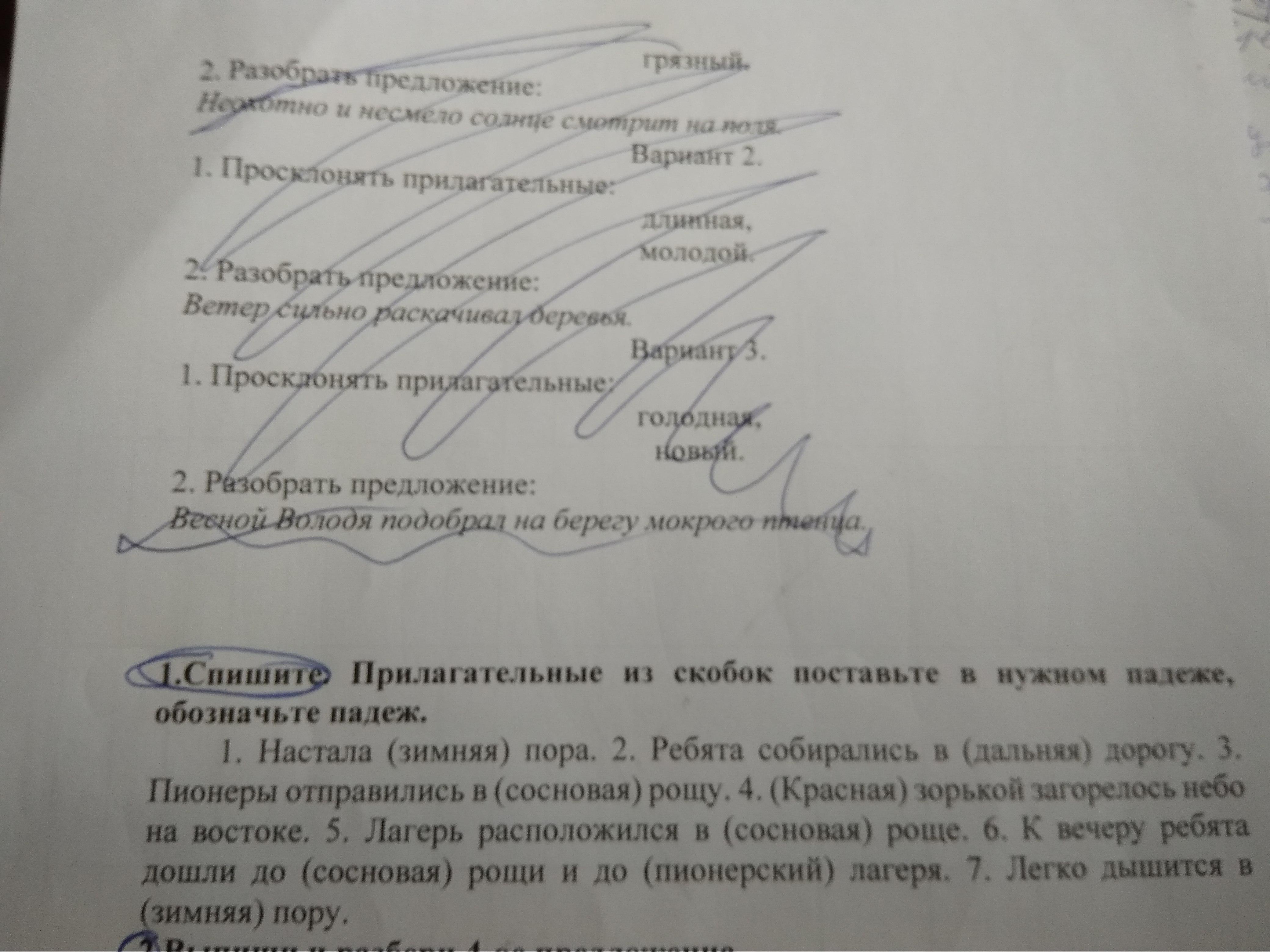 Спишите. Прилагательные из собак поставьте в нужно падеже обозначьте падеж.