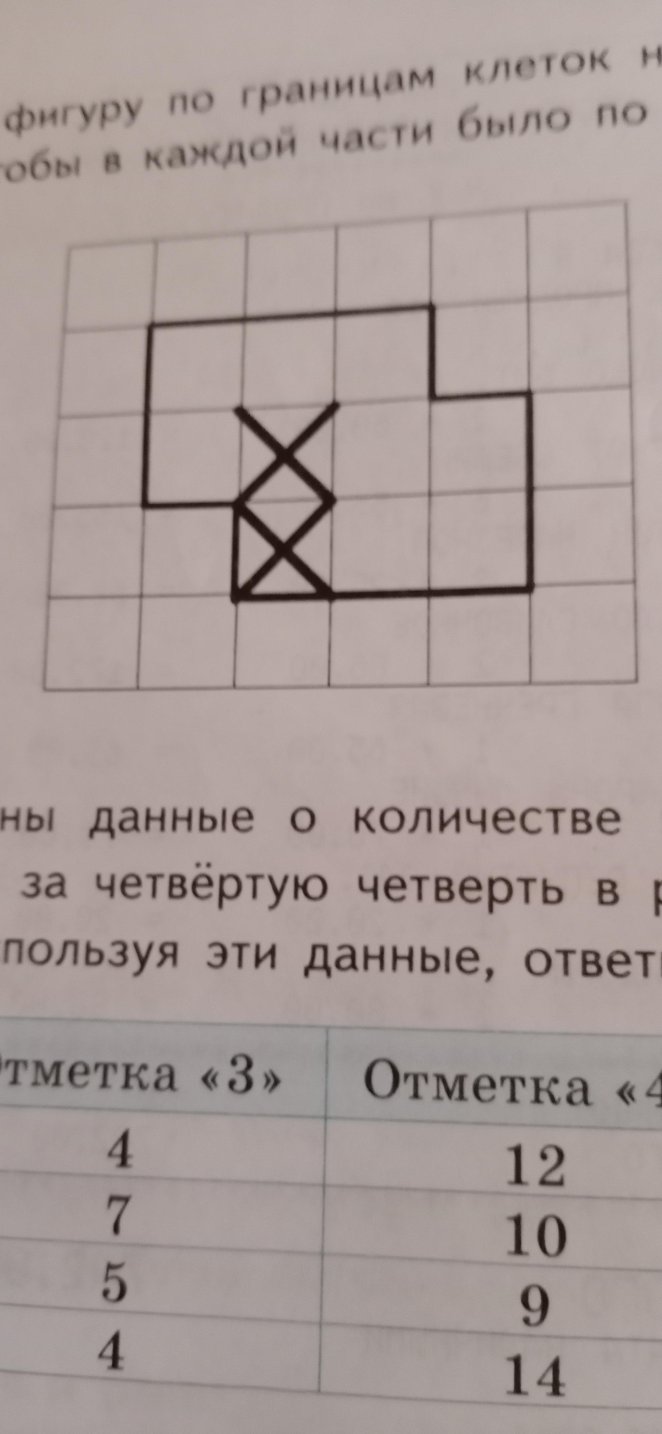 Поиогите пж с задачкой на рисунке с.26 изображена фигура найди периметр этой фигуры если сторона одной клетки 1 см и 2. Разрежь фигуру по границам клеток на две одинаковый части так чтобы в каждой части было по одной отмеченной клетке