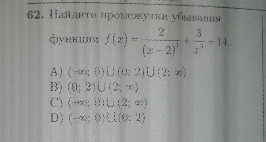 пр62) Найдите промежутки убывания функции f(x)= 2/(x-2)^3 + 3/x^3 +14 .