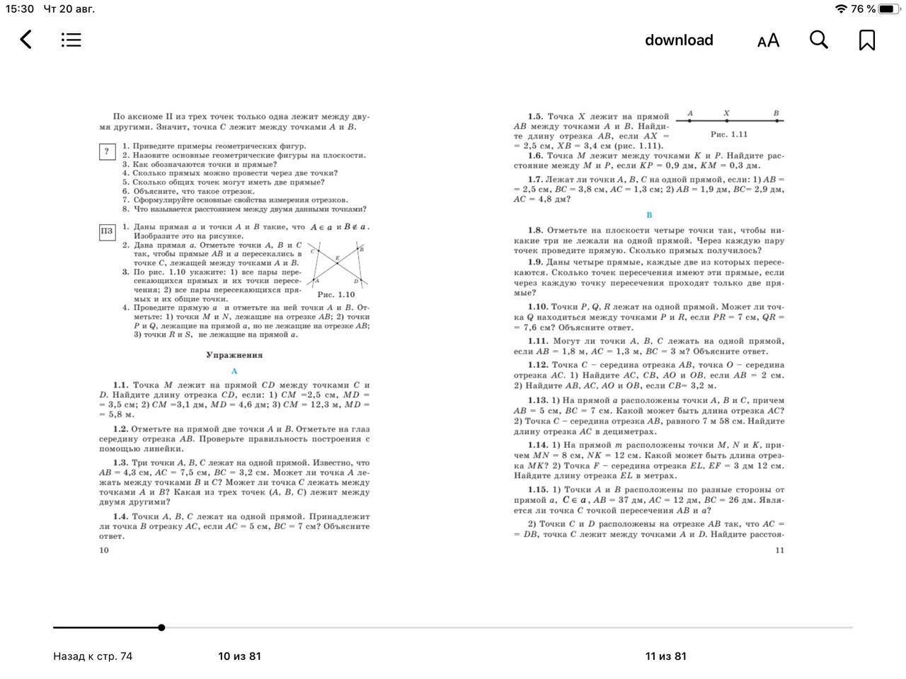 1.7. 1) Да, точка А лежит между точками В и С, т.е. ВА+АС=ВС, 2.5+1.3=3.8