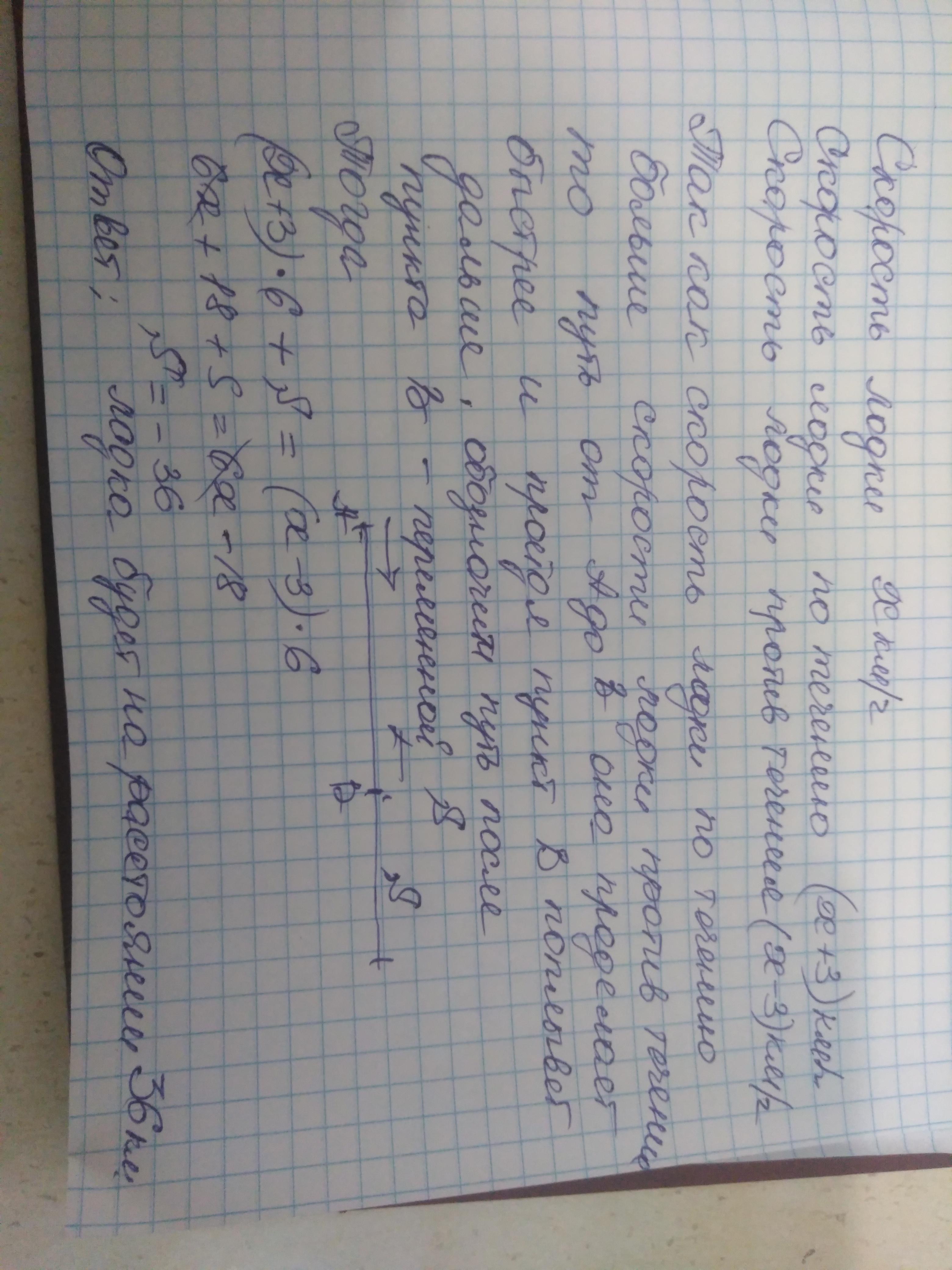 то х-3 V лодки против течения и х+3 V лодки по течению.