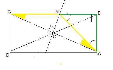 АО=ОС по свойству диагоналей прямоугольника .Пусть МО -серединный перпендикуляр к диагонали BD .
