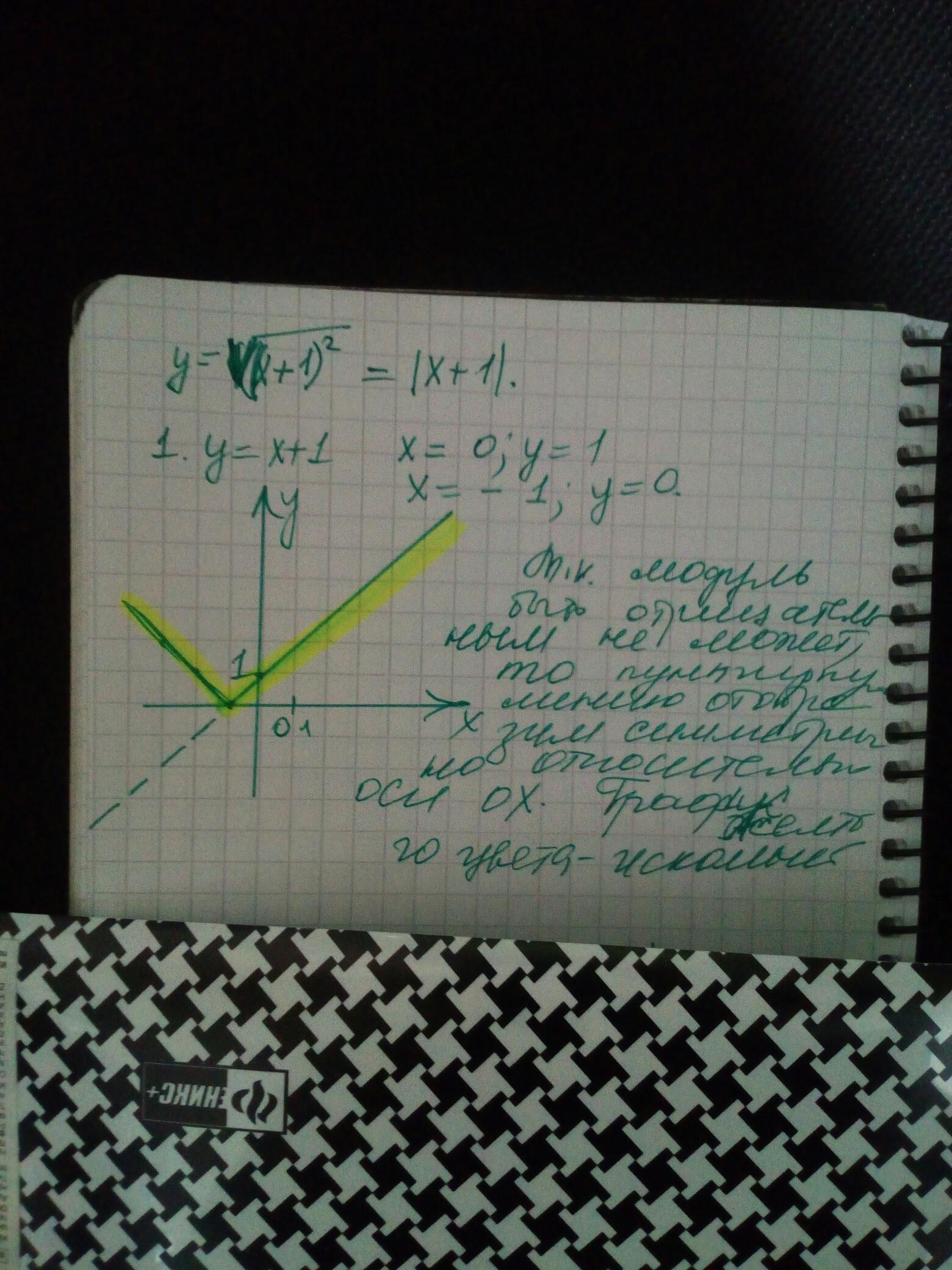 Постройте график функции y=корень из ((x+1)^2). Объясните, пожалуйста, каждое ваше действие, а также, почему вы так сделали.