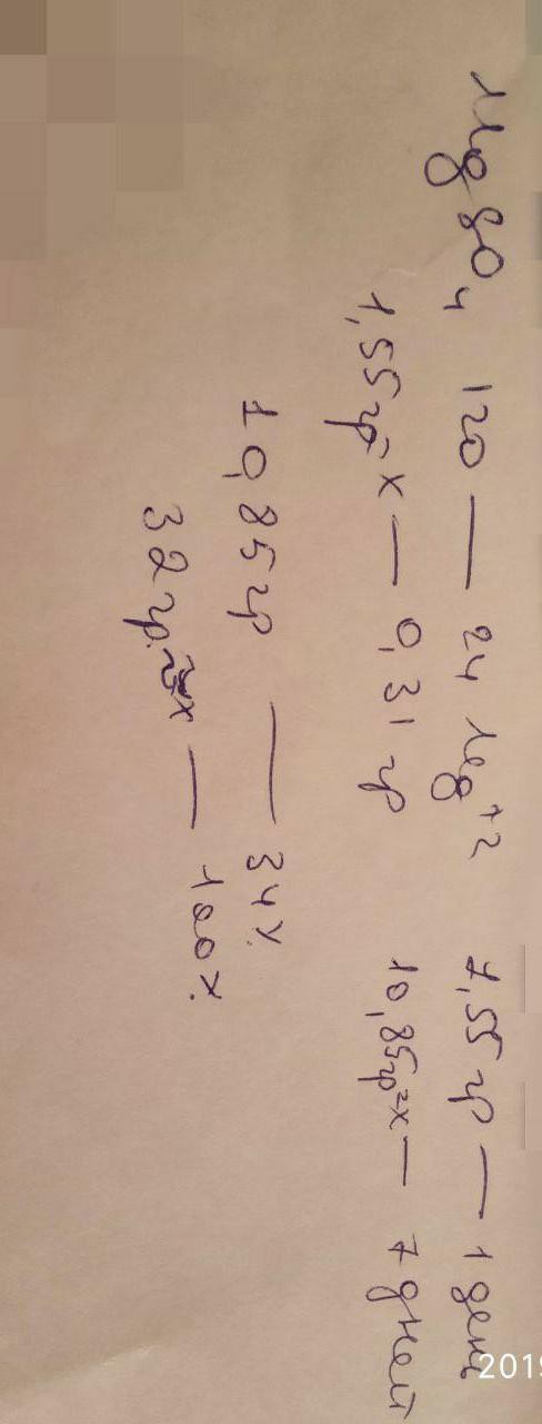 Для восполнения дефицита магния в организме назначают пищевую добавку в виде соли MgSO4. Суточная потребность магния для взрослого человека составляет 0.31 г. Вычислите массу данной соли, которая необходима для обеспечения магнием на неделю при условии его усвоения на 34%