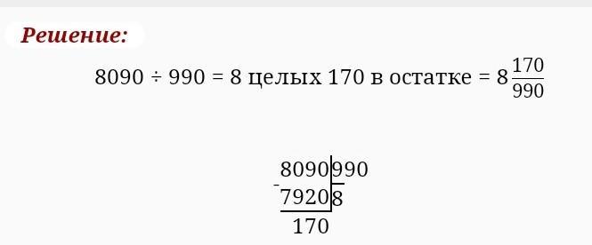 8090 ÷ 990 = 8 целых 170 в остатке = 8 170/ 990