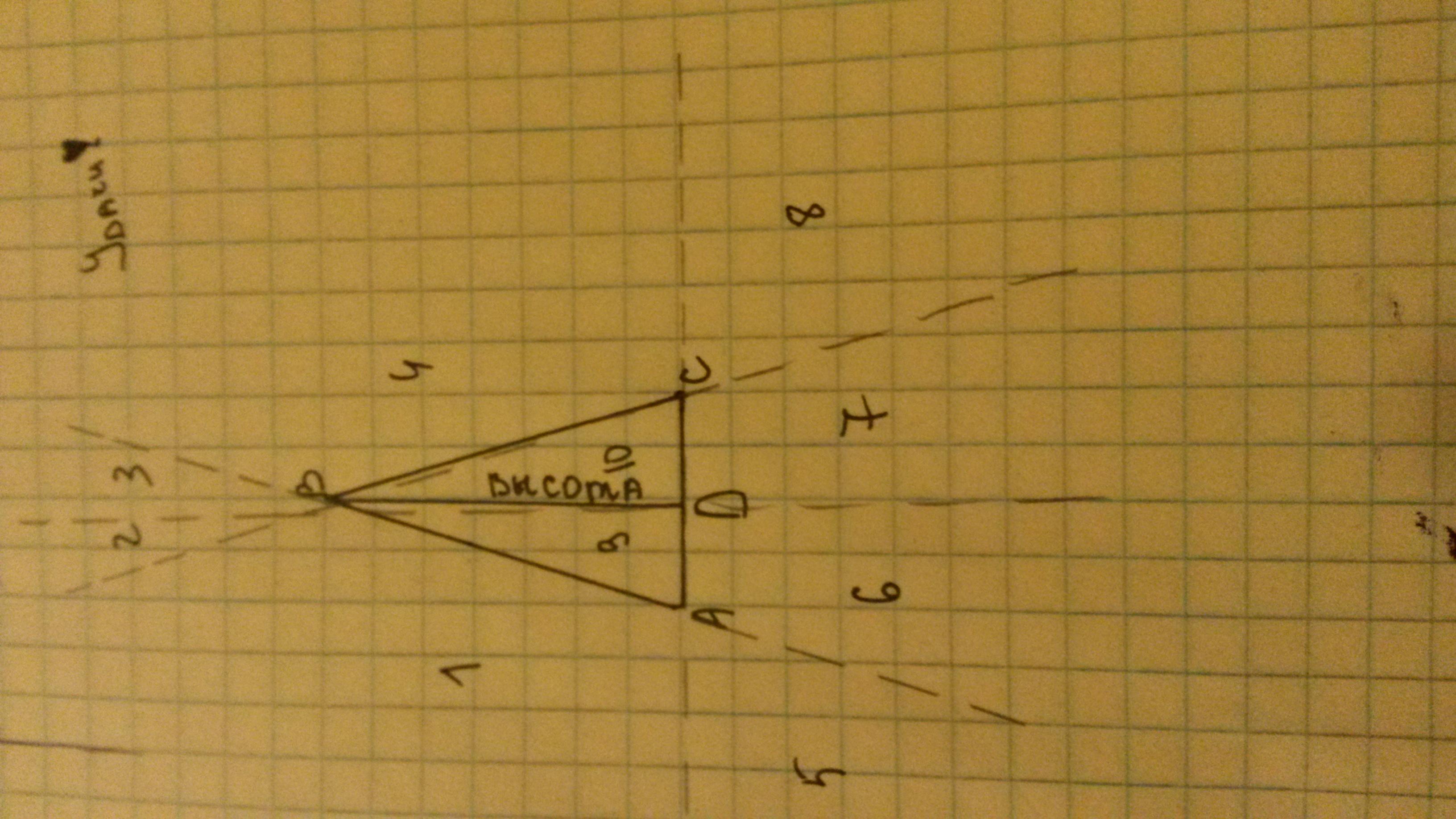 Дан остроугольный треугольник авс , вd - высота треугольника . На сколько частей делят плоскость прямые ав,вс,ас и вd?