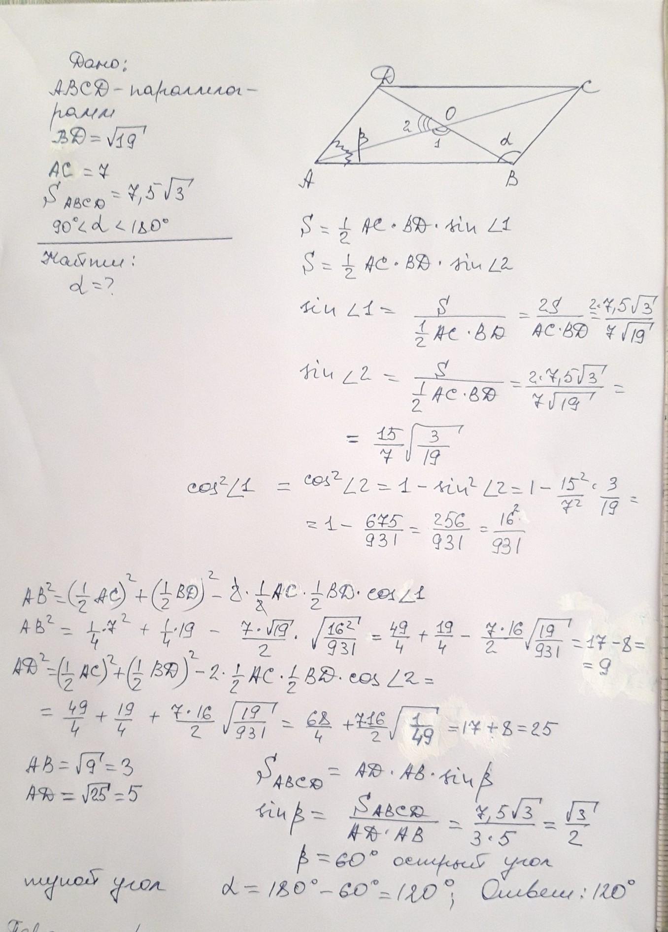 Площадь параллелограмма с диагоналями
