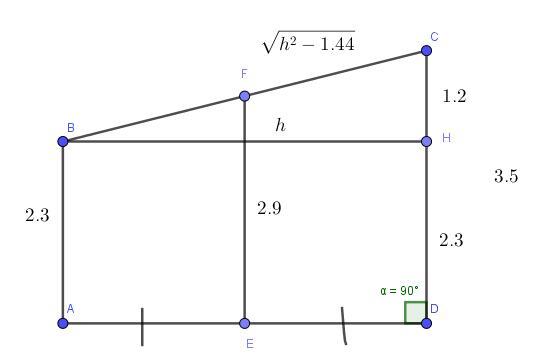 опускаем высоту . Один кактет высота, другой катет 3,5-2.3 = 1.2