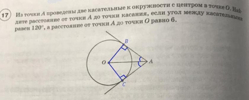 ∠А=120° ⇒ ∠ОАВ=∠ОАС=120°:2=60° ⇒ ∠АОВ=90°-60°=30°