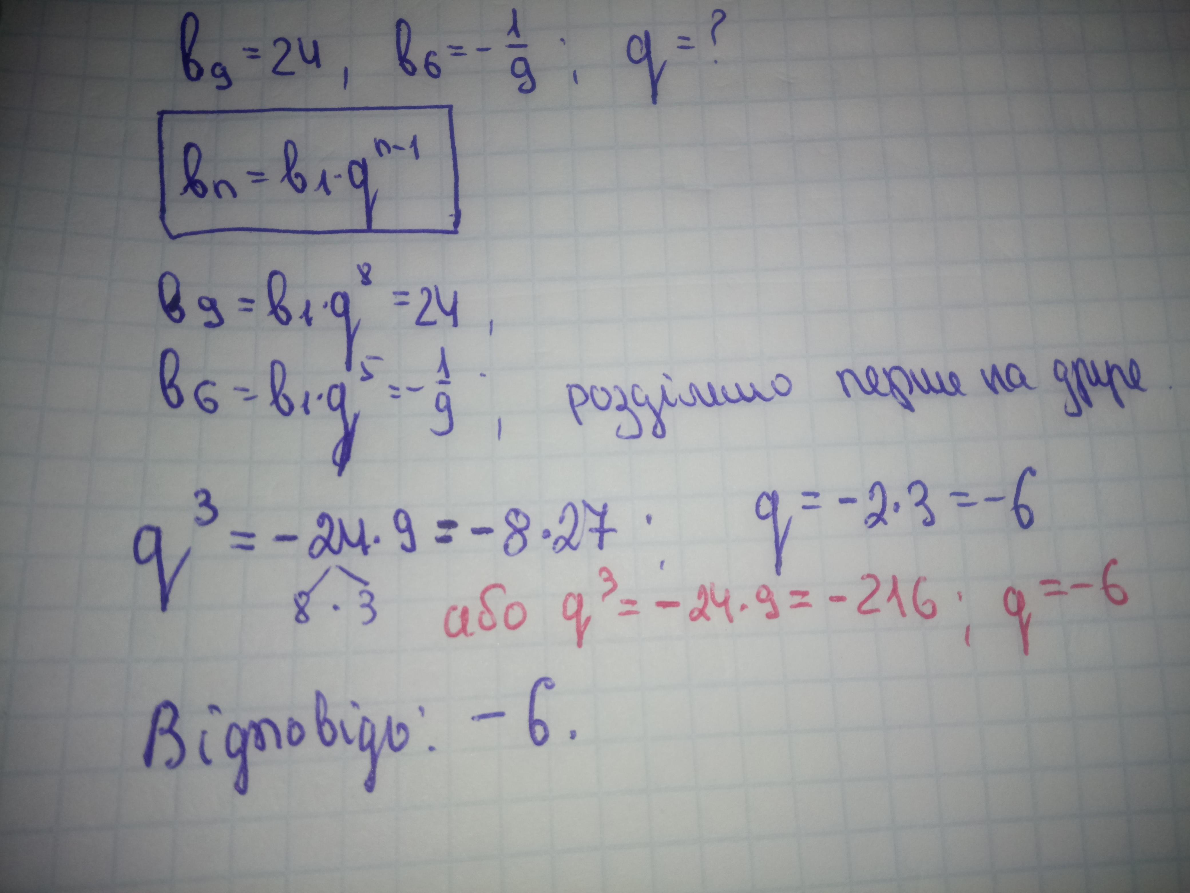 q³=b₉/b₆=24 : (-1/9)=24 * (-9)
