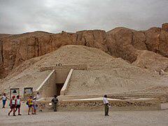 Если иметь ввиду Великие Египетские пирамиды Гизы, то Тутанхамон не захоронен ни в одной из них. Гробница Тутанхамона расположена в Долине Царей.Выглядит она вот так.