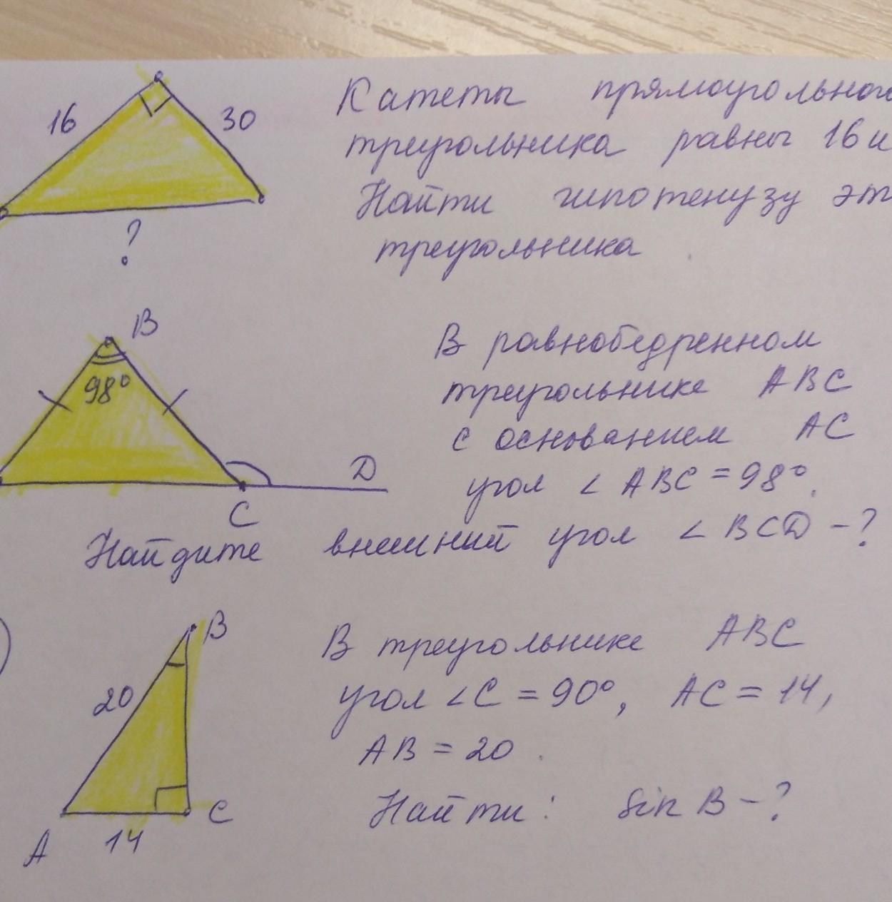 ∠BCA = (180° - 98°) : 2 = 82° : 2 = 41°