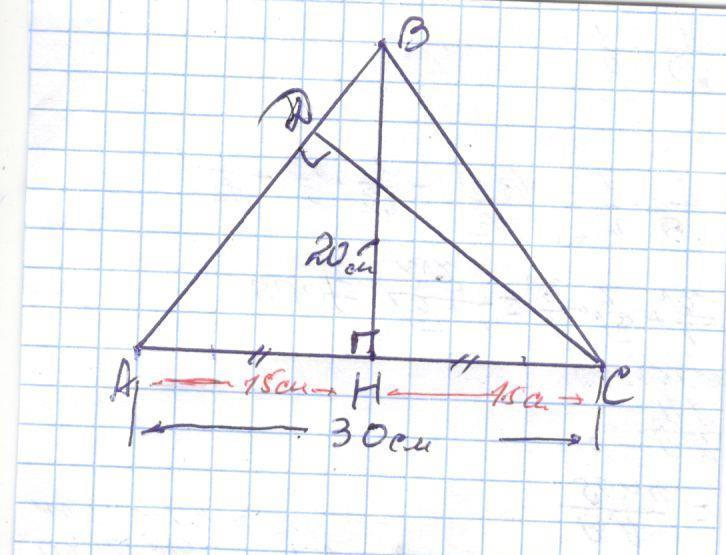 AH =AC/2=15 см.Длина боковой стороны треугольника определим