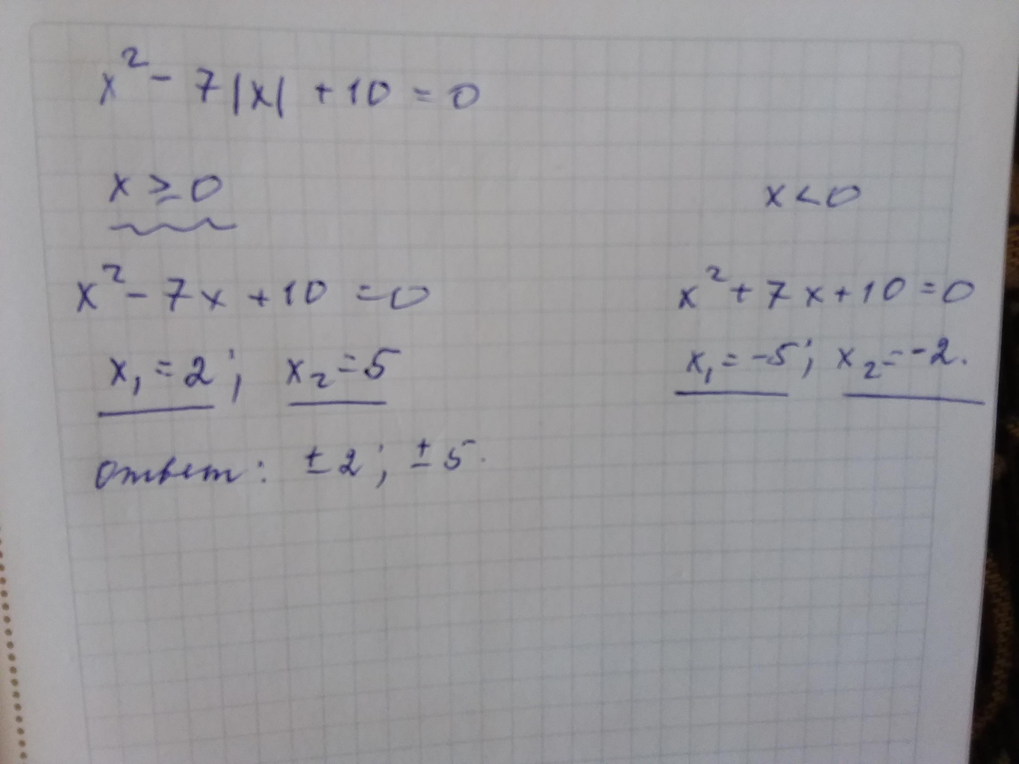 Ответ : Уравнение имеет 4 решения : ± 2 , ± 5