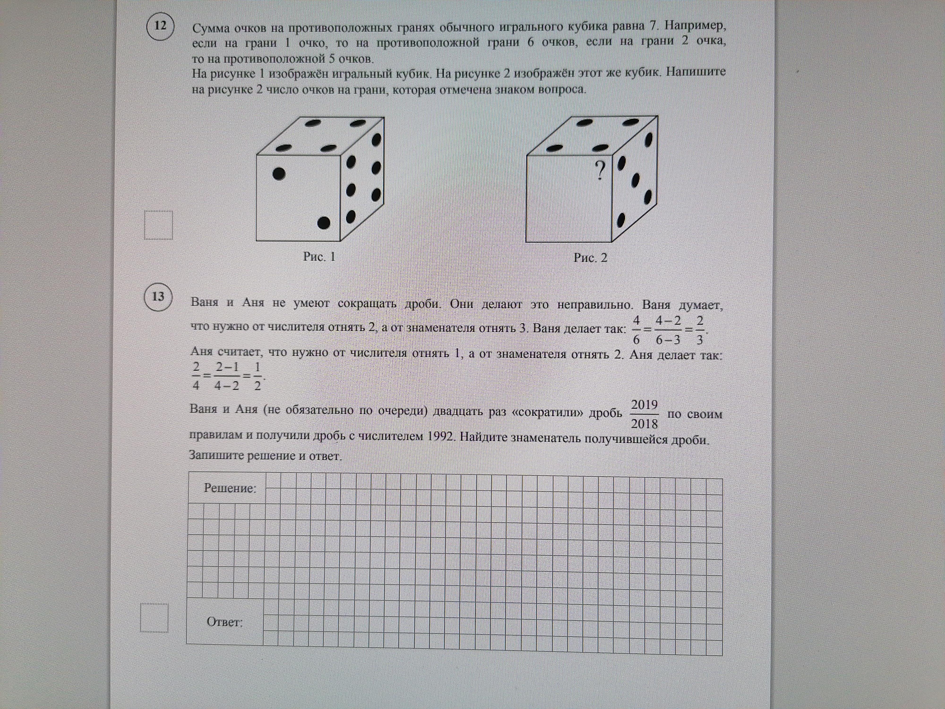 12. Если грань с четвёркой сверху, то на боковых гранях по часовой стрелке (если смотреть сверху) написаны 6 - 2 - 1 - 5 - 6 - ....