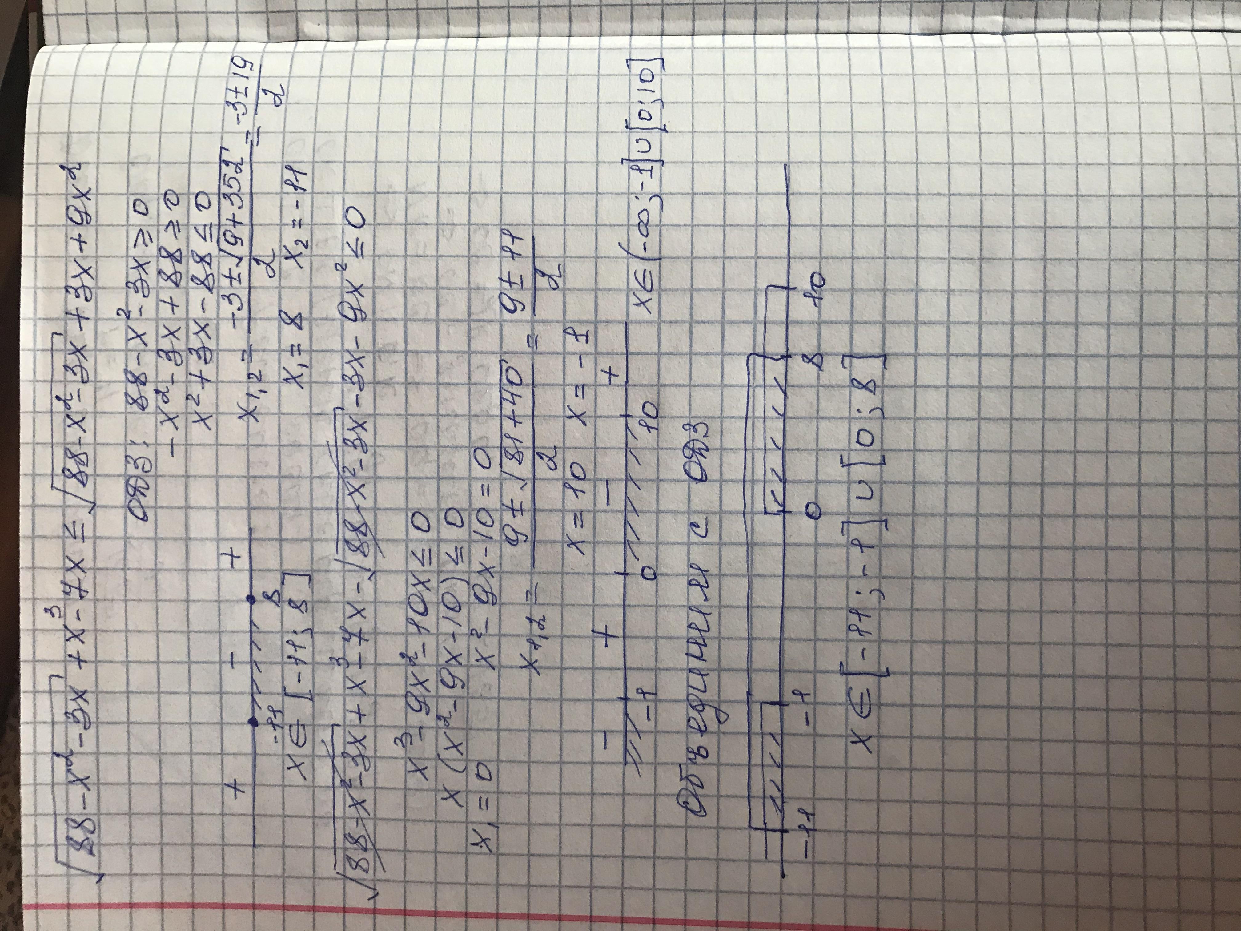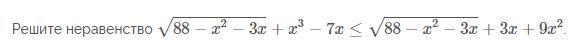 ОДЗ: 88-x^2-3x>=0, x^2+3x-88<=0, D=9+4*88=361=19^2