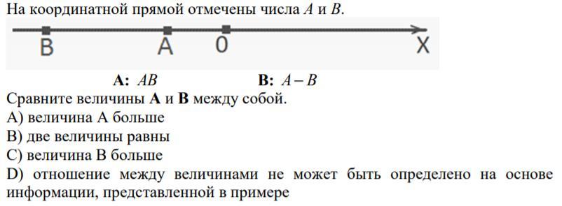 Так как величина А расположена на числовой оси слева от 0, но ближе к 0 чем величина В, То величина А больше чем величина В Правильно: ответ А
