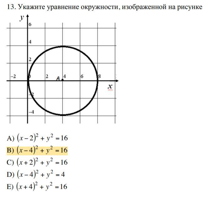 Поэтому, если подставить полученные значения в формулу окружности получим правильный ответ уравнение В)