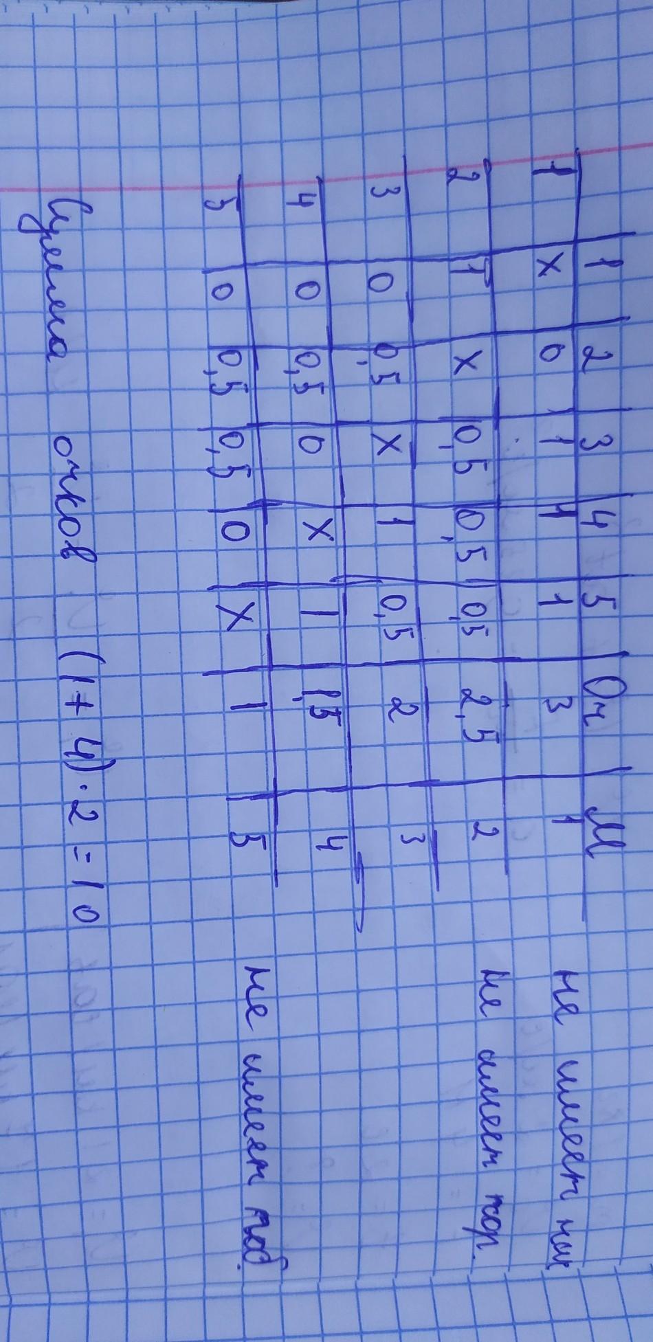 Пять шахматистов провели однокруговой турнир, в котором все набрали разное количество очков. При этом шахматист, занявший первое место, не имел ничьих, занявший второе — поражений, и только один участник не имел побед. Восстановите результаты турнира. В качестве ответа введите количество очков, которое набрали участники (в произвольном порядке). С решением!!
