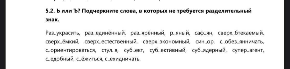 разЪединённый, разЪярённый, рЬяный, сафЬян, сверхЪёмкий, сверхЪестественный, синЬор, собезЬянничать, стулЬя, субЪект, субЪективный, субЪядерный, сЪедобный, сЪёжиться, сЪехидничать.