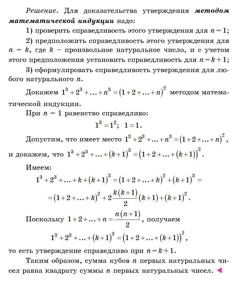 т.е. 1³ + 2³ + ... + к³ = (1+к)²*к²/4