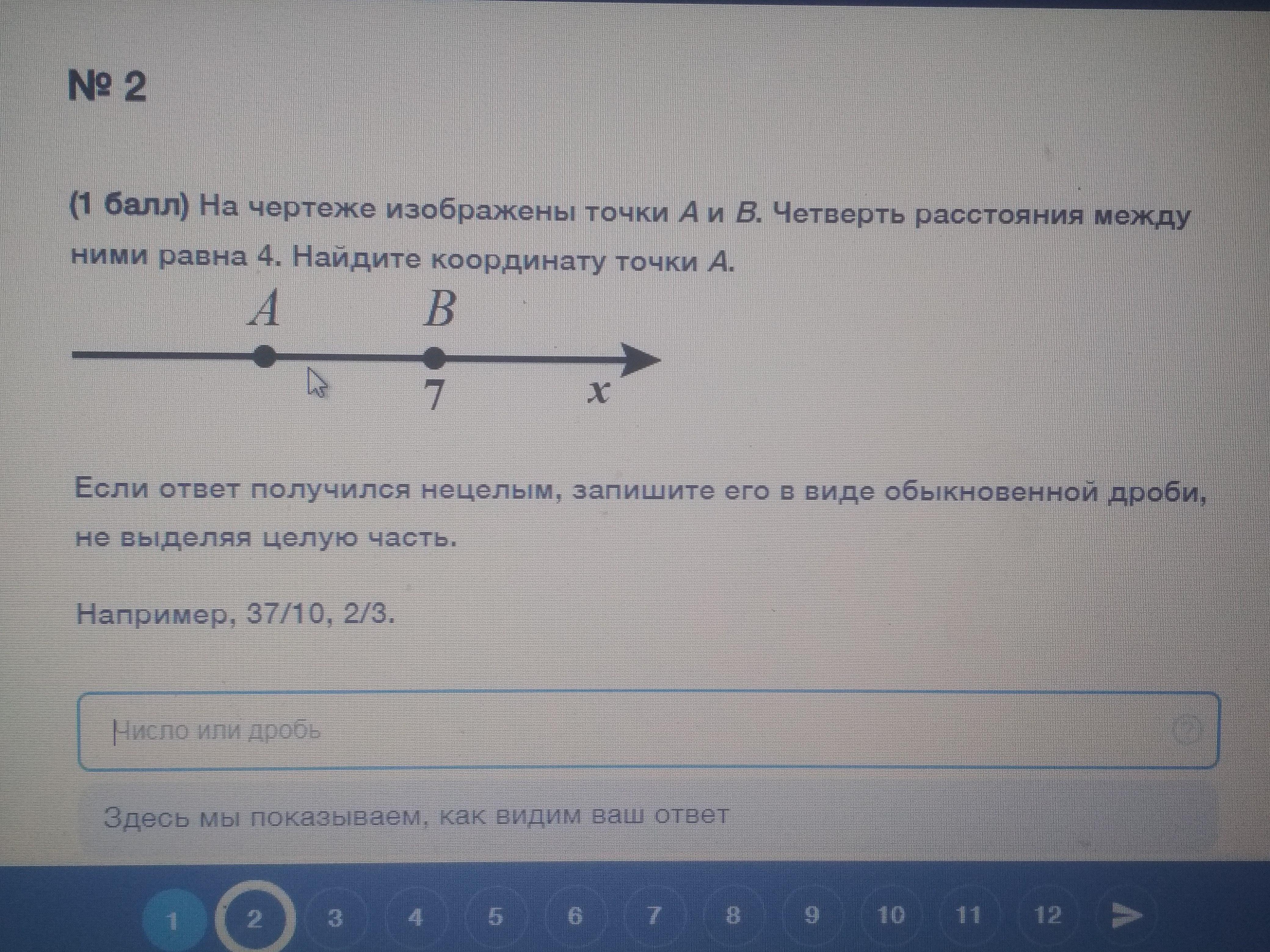 На чертеже изображены точки А и Б. Четверть расстояния между ними равна 4. Найди координату точки А.