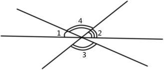 В сумме ∠1, ∠2, ∠4 дают градусную меру развёрнутого угла, то есть 180°.