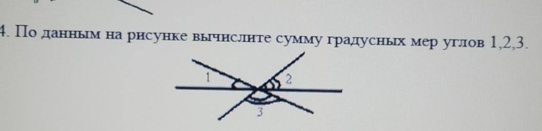 180, потому что угол 3 равен углу, лежащему между 1 и 2(как вертикальные), а угол 1 плюс угол угол 2 плюс угол между 1 и 2 равен 180(по рисунку)