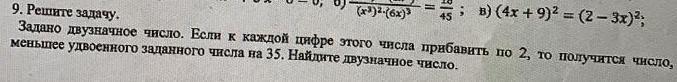 Пусть заданное число - xy, тогда, если к каждой цифре этого числа прибавить по 2 будет - (xy+22). По условию удвоенное значение этого числа больше на 35. Тогда: