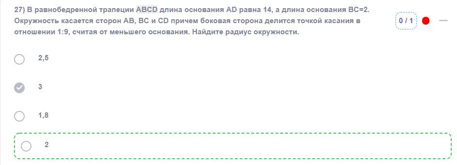 Найдем сначала x. Пусть окружность касается AB и BC в точках K и L соответственно. Тогда BK=BL=x. Аналогично CL=x. Тогда BC=2x => x=1. Радиус, проведенный в точку касания, перпендикулярен к касательной. Тогда, если O - центр окружности, OK=OL=R и OK⊥AB, а OL⊥BC. Значит ∠KBL+∠KOL=180°. Тогда по теореме косинусов для четырехугольника KBLO можно выразить KL² двумя способами: через OK=OL=R и BK=BL=1. Приравняем KL². Получим: . Здесь cosa - косинус ∠KBL.